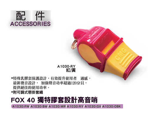 FOX 40獨特膠套設計高音哨(紅/黃)